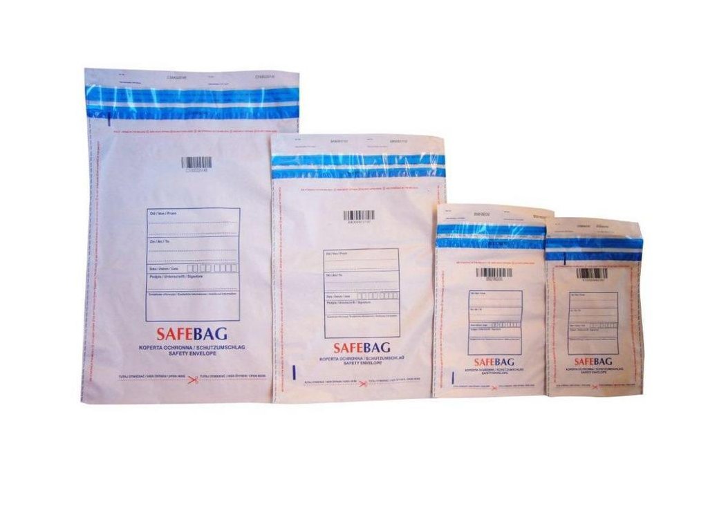 Obálky SafeBag z LDPE fólie s bezpečným uzávěrem jsou určené pro posílání cenných a tajných zásilek. Obálky jsou opatřeny uzávěrem, který ihned zviditelňuje jakýkoliv pokus neoprávněného zásahu. Navíc číselník umožňuje přesnou identifikaci zásilky a sledování její cesty během celého přepravního procesu. Také plní roli potvrzení převzetí ve formě lehce odnímatelné poukázky. Bezpečnostní obálky jsou určené zvláště pro banky a ostatní finanční instituce, bezpečnostní agentury, hotele, obchody, čerpací stanice. Také se používají ve firmách pro přepravu a uchovávání peněz, bižutérie, osobních složek, tajných dokumentů a projektů, datových nosičů, kreditních karet, klíčí k chráněným místnostem (a ostatních depozitů).- Díky bezpečnostním systémům, bezpečnostní obálky SAFEBAG levně a jednoduše zaručuji ochranné vlastnosti sejfů nebo obrněných pokladen.